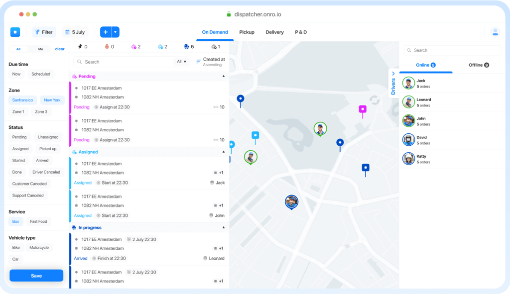 أدر عمليات توصيل السائقين والمركبات. تتيح لوحة التحكم للمرسلين تبسيط عملياتهم، وخفض التكاليف، وتحسين تجربة العملاء.
